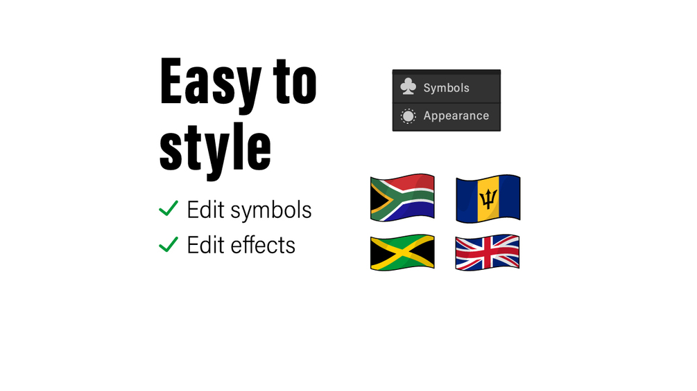 - Setup for easy restyling (shadows and borders). Simply edit 2 symbols