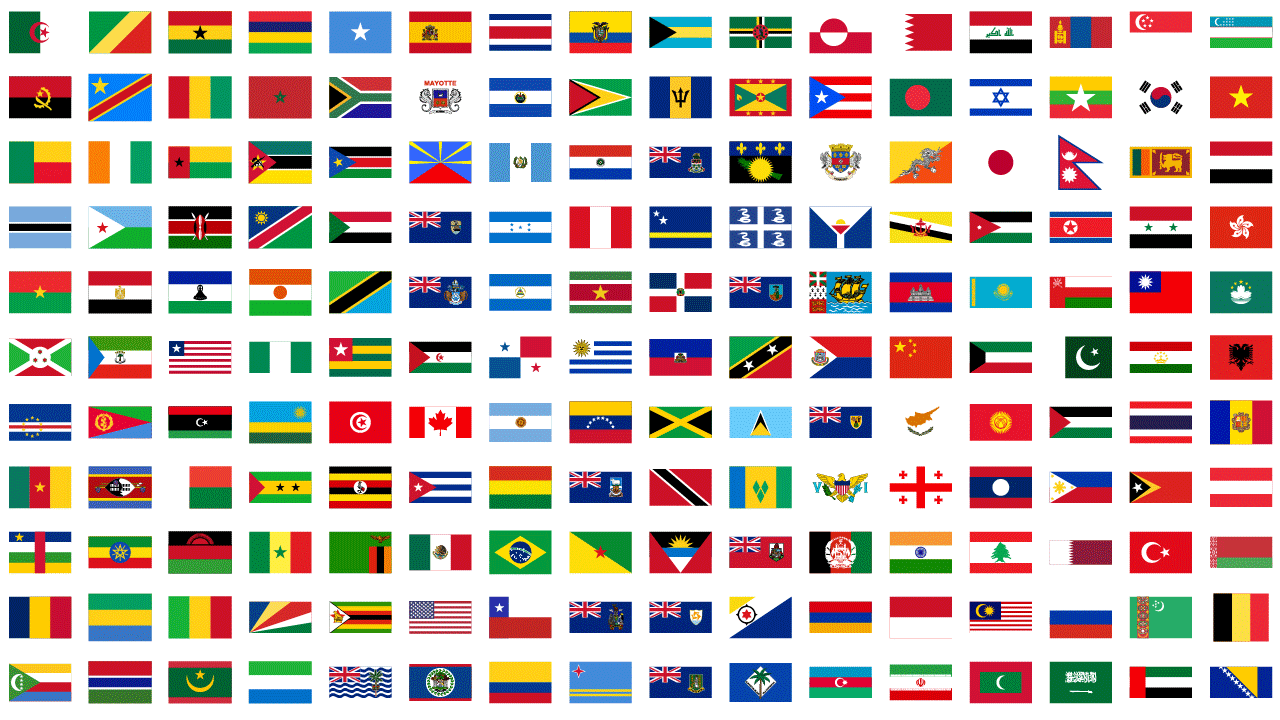 - Individual flag as PNGs in 5 sizes (0.5x, 1x, 2x, 3x, 4x)